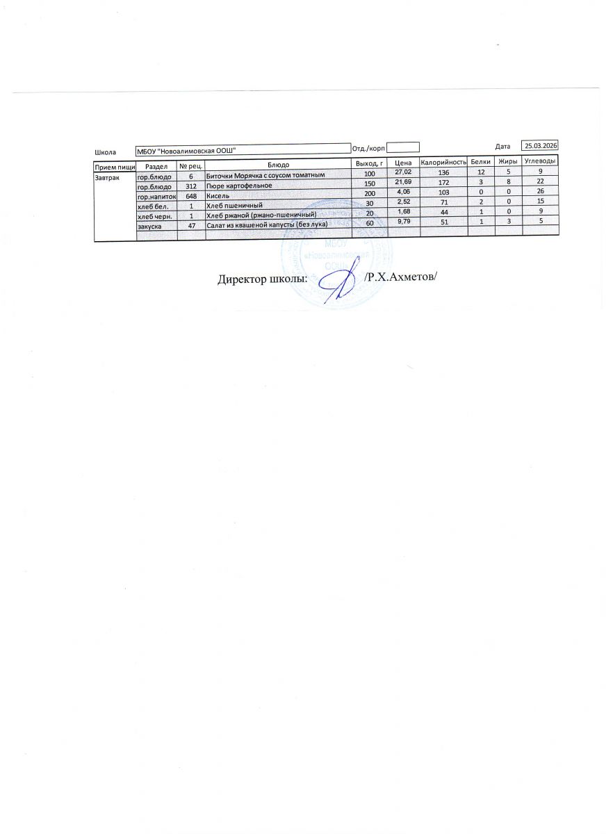 Однодневное меню на 25 марта 2026 г.