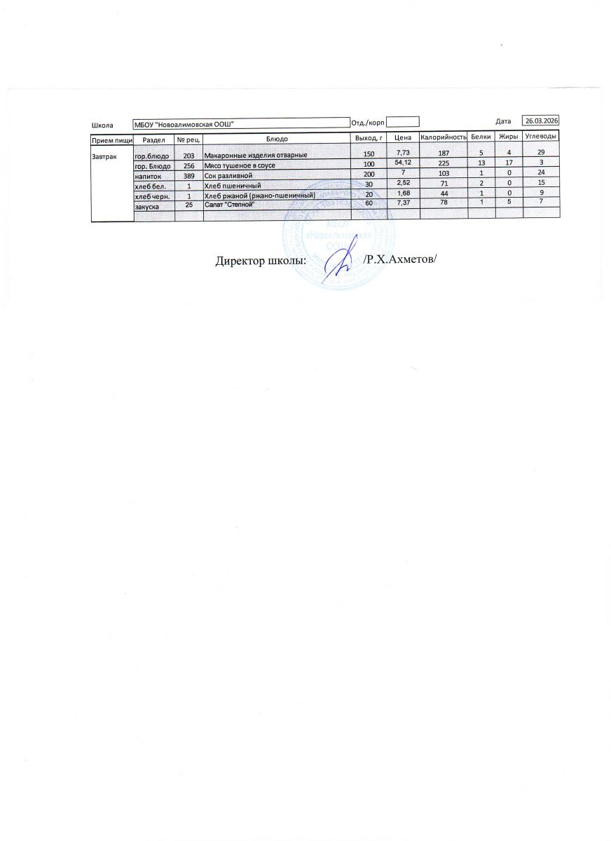 Однодневное меню на 26 ноября 2025 г.