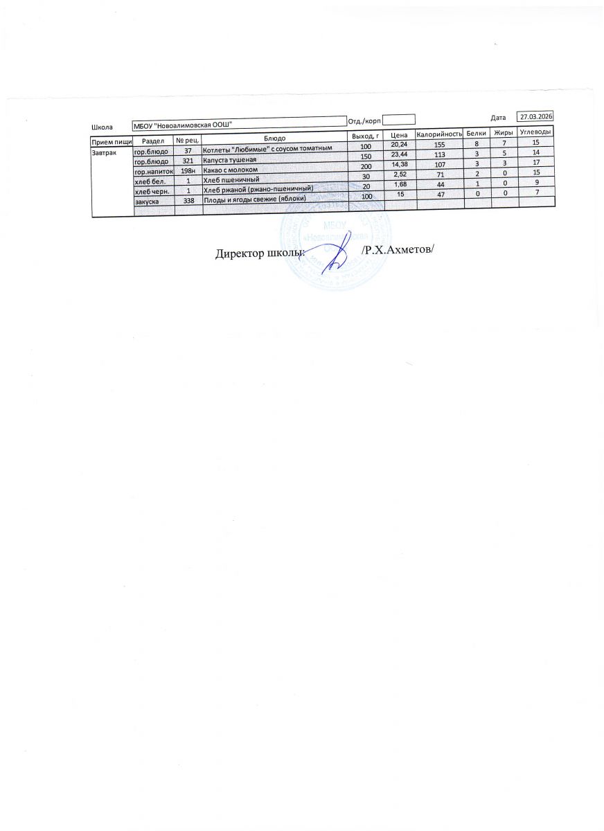 Однодневное меню на 27 ноября 2025 г.