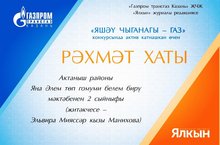 "Газпром трансгаз Казань" ҖЧҖ һәм "Ялкын" журналы редакциясе уздырган "Яшәү чыганагы - газ" конкурсында актив катнашкан өчен мәтәбебезнең 2 нче сыйныф укучылары рәхмәт хаты белән бүләкләнде. Җитәкчеләре - Эльвира Мияссәр кызы Манихова. Афәрин!