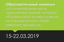 В целях достижения необходимого уровня освоения всеми обучающимися образовательного минимума, обеспечения высокого уровня обученности учащихся по основным предметам и подготовки к Государственной итоговой аттестации, 15-22 марта в школе пройдет сдача образовательного минимума за 3 четверть 2018-2019 учебного года в 2-4 классах по математике, русскому языку, английскому языку, окружающему миру и по родному языку, в 5-9 классах по математике, русскому языку и по английскому языку.