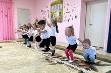 Бакчабызда физик үсеш буенча эшчәнлекләр һәр төркемдә атналык шөгыльләр челтәре нигезендә уза. Физик тәрбия төрле яклап баланың үсешенә яхшы йогынты ясый. Баланын физик үсешен,үз-үзен тотышын,ныгыта. Бүген 2 кечкенәләр төркемендә , балаларны колоннада атлап йөрү һәм йөгерү,әйләнә- тирәдә ориентлаша белүләрен камилләштерү, балаларнын сәламәтлеген саклау һәм ныгыту эшен дәвам итү максатыннан, бик күңелле физкультура эшчәнлеге узды.Балалар бау аша сикерү күнекмәләрен үстерү белән беррәттән гәүдә төзлеген формалаштырып хәрәкәт активлыкларын үстерүне дәвам иттеләр..