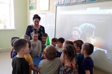 12 апрель – Космонавтика көнен бакчабызда тәбияләнүче балалар күтәренке рухта билгеләп үттеләр. Балалар космос, космонавтлар, йолдызлар, планеталар турында мәгълүмат белән таныштылар. Балалар рәсемнәр, кул эшләре ясадылар. Атна дәвамында һәр төркемдә космоска багышланган әнгәмәләр үткәрелде, рәсемнәр ясалды, аппликацияләр эшләнде. Бәйрәм көнендә исә Белка һәм Стрелка кунакка килеп балаларга уен формасында беренче тапкыр космоска очучы булулары хакында сөйләделәр, уеннар уйнаттылар, Юрий Гагарин турында видеолар күрсәттеләр. Көн дәвамында тәрбиячеләр балаларга йолдызлар турында, планеталар һәм кояш системасы хакында сөйләделәр./ 12 апреля-День космонавтики отметили воспитанники Новоалимовского детского сада. Дети познакомились с информацией о космосе, космонавтах, звездах, планетах. В течение недели в каждой группе проводились беседы, посвященные космосу. А в праздничный день Белка и Стрелка пришли в гости и в игровой форме рассказали ребятам о своем первом полете в космос, поиграли в игры, показали видеоролики о Юрии Гагарине. В течение дня воспитатели рассказывали детям о звездах, планетах и Солнечной системе.