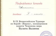 31 октября 2015 г. IX Всероссийский Турнир по борьбе "Көрәш", посвященный памяти Чемпиона мира Булата Валиева. Команда 3 место