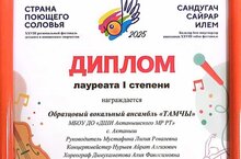 6 февраль көнне үрнәк вокал ансамбльләребез Тамчы", Умырзая" Рухият фондының Әлмәт шәһәрендә "Сандугач сайрар илем" XXVIII балалар иҗаты фестиваленең "Вокал ансабльләр" номинациясендә катнашып. " лаеклы 1 нче дәрәҗә лауреатлар исемен алып кайттылар! Җитәкчеләре - Лилия Мостафина, Разида Хаҗиева.