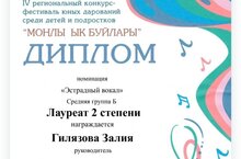 Бу көннәрдә Мөслим сәнгать мәктәбе "Моңлы Ык буйлары" IV региональ конкурс-фестиваль узды. Безнең укучыларыбыз бу конкурста да сынатмадылар. Вокал бүлеге укучысы Зәлия Гиләҗева - 2 нче дәрәҗә лауреат, бию бүлеге укучысы Хабибуллина Зәлия - 2 нче дәрәҗә, "Шатлык" бию ансамбле - 3 нче дәрәҗә лауреат булды. Җитәкчеләре Айзирәк Локманова. КОТЛЫЙБЫЗ!