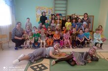 19 апрель көнне театр бүлегенең "Тылсым" балалар театры "Мырауҗан маҗаралары" әкияте белән "Ромашка" балалар бакчасында кунакта булдылар.