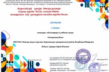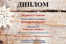 Галимова Ләйлә классы укучылары Ахметова Сөмбел, Басыйрова Адилә I Бөтенрәсәй "Новогодний мандарин" конкурсында катнашып, I нче дәрәҗә лауреат исеменә лаек булдылар. КОТЛЫЙБЫЗ!