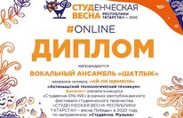 «Актанышский технологический техникум» финалист онлайн-конкурса «Студвесна ONLINE» в рамках республиканского фестиваля студенческого творчества «СТУДЕНЧЕСКАЯ ВЕСНА РЕСПУБЛИКИ ТАТАРСТАН – весна Победы» в 2020 году по направлению: «Студвесна. Музыка»