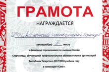 Сегодня в ГАПОУ «Сармановский аграрный колледж» подведены итоги финальных соревнований по лыжным гонкам в рамках Спартакиады обучающихся профессиональных образовательных организации Республики Татарстан « Готов к труде и обороне»