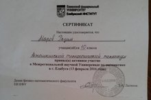 13 февраля 2016 года студент 1 курса Маров Разим принял участие в Межрегиональной научной Универсиаде по математике в г. Елабуга (КФУ). Руководитель Гумерова В. М