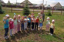 Һәр уку елы башында бергәләп табигатькә чыгу бакчабызның матур бер традициясенә әверелде. Әлеге экскурсия уртанчылар төркеменә аеруча кызыклы булды, чөнки аларның мондый зур "сәяхәт" кә әле беренче генә чыгулары иде. Алар зурлар төркеменнән һич калышмыйча, спорт уеннарында катнаштылар. Балалар табигать кочагында туйганчы күңел ачып, саф һава сулап, яңа көч җыеп кайттылар.