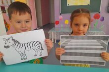После беседы дети раскрашивали зебр. В группе была организована выставка работ, так дети познакомились с одним из животных далекой Африки. -