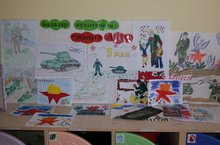 Бөек Җиңүнең 70 еллыгы уңаеннан группаларыбызда махсус почмаклар булдырылды. Әти-әниләр белән балалар бергәләп эшләгән рәсем күргәзмәсе дә биредә урын алды.