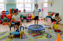 Бакчабызның спорт залында балаларның бик яратып шөгыльләнә торган почмагы бар. Һәр төркем бирегә үз вакыты белән керә.