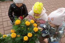 Дети старшей группы вместе с воспитателями наблюдали осеннюю природу. Увидев, что осенним цветам грустно, дети спели веселые песни.