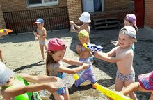 Сегодня у нас День Нептуна. В этот жаркий летний день ребята провели очень интересно. Они играли в увлекательные игры с водой.