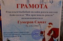 Актаныш авыл җирлегара үзәк китапханәсе оештырган "Тылсымчы бабайга хат" онлайн рәсем-котлау бәйгесендә катнашып, бакчабызның кечкенәләр төркеменә йөрүче Гумеров Самат "Иң оригиналь рәсем" номинациясендә җиңүче булды. Зур җиңүең белән сине Самат!