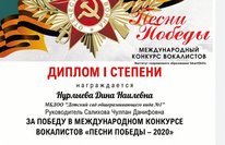 Дети еще маленькие, но старательно изучают красивые песни. Даже успели поучаствовать в конкурсе "Песни Победы", организованным институтом современного образованя SmartSkills. Нурлыева Дина и Гараева Айсина заняли 1 место, Сираева Марьям 2 место. Поздравляем!