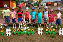 Яз җитүгә балалар тәрбияче апалары белән бергәләп тәрәзә төбенә чәчәк үсентеләре утырталар. Соңыннан аларны су сибеп, карап үстерәләр. Җәй көне әлеге чәчәкләр матур булып балалар уйный торган мәйданчыкларны бизәп утыралар. Афәрин балалар!