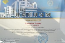 Россия Эчке эшләр министрлыгының ТР Муниципаль берәмлекләре буенча ЮХИДИ бүлекчәләре (бүлекләре) хезмәткәрләре һәм ветераннары арасында Бөек Ватан сугышында җиңүнең 75 еллыгына багышланган республика смотр-конкурсында безнең балалар бакчасына йөрүче Ризванов Әнвәр "Оригиналь жанр"номинациясендә 3 нче урынны алды. Котлыйбыз!