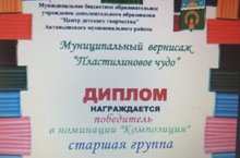Балалар иҗат үзәге уздырган "Пластилин могҗизасы" бәйгесендә зурлар төркеме балалары (җитәкчесе: Салахова Э.Б.) "Лунтикның туган көне" дип исемләнгән композиция белән катнашып, җиңү яуладылар. Котлыйбыз!