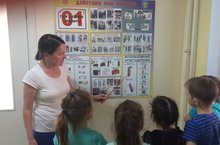 Балалар белән шөгыльләр һәм режим моментларында янгын куркынычсызлыгы турында әңгәмәләр оештырабыз. Янгын чыгу очрагы була калса, нинди номерга шалтыратырга кирәклеген аңлатабыз. Шушы темага кагылышлы ширмалар эшләп куелды. Янгын куркынычсызлыгы уенчык машиналары булдырылды. Шулай ук дидактик уеннар уйнатабыз. Уен вакытында нәрсә белән уйнарга ярамаганлыгын балалар үзләре рәсемгә карап аңлаталар. Төркемдә бу темага кагылышлы рольле – сюжетлы уенга да зур игътибар бирелә. Ата –аналар белән дә төрле конкурслар, әңгәмәләр оештырабыз.