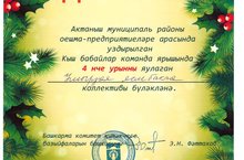 Актаныш муниципаль районы оешма-предприятиеләр арасында уздырылган Кыш бабайлар команда ярышында безнең балалар бакчасы коллективы командасы 4 нче урын яулады. Афәрин!