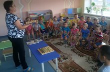 20 июль - Халыкара шахмат көне уңае белән 2 кечкенәләр, уртанчылар һәм зурлар төркеме балаларын тәрбияче Ф.Ф. шарапова шахмат уенының килеп чыгу тарихы белән таныштырды. Шахмат алиһәсе Алисә Галләмованың безнең район белән бәйле гаилә җепләре сурәтләнгән фотоларын күрсәтте. Шахмат фигураларын балалар бик кызыксынып өйрәнделәр.