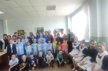 Балалар иҗат үзәгендә караучысыз яки ятим калган, тәрбиягә алынган балалар белән күңелле очрашу үтте.Өстәмә белем бирү педагоглары Рәзифә Акмалова һәм Алинә Солтанова балаларга мастер-класс күрсәттеләр. Рәзифә Мирсәгыйть кызы балалар бергә “Георгий чәчәге – Җиңү билгесе” ясадылар. Алинә Илфак кызы гадәти булмаган ысул белән рәсем ясарга өйрәтте.Балалар остазлары белән бергәләп эшләүдән уңай кичерешләр,яңалык һәм истәлек эшләре алып киттеләр. Мондый очрашуларның дәвамлы булуын да теләделәр.