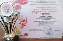 Воспитанница кружка "Мозаика" Шайхеразиева Айзиля стала Лауреатом первой степени открытого республиканского конкурса народного творчества "Возрождение - Яңарыш". Җитәкчесе - Муратова М.З.