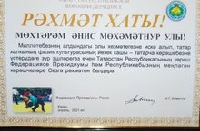 Балалар иҗат үзәгендә озак еллар "Көрәш" түгәрәге җитәкчесе булып эшләгән өстәмә белем бирү педагогы Садри Әнис Мөхәмәтнур улы Татарстан Республикасының көрәш президиумы рәисе Марат Әхмәтовның "Рәхмәт хаты" белән бүләкләнде. Киләчәктә дә зур уңышлар юлдаш булсын сезгә! Без сезнең белән горурланабыз!