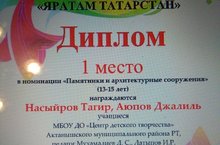 Поздравляем победителей республиканского конкурса макетов культурных объектов Республики Татарстан в номинации "Памятники и архитектурные сооружения".Руководитель - педагог ДО Мухамадиев Д.С.