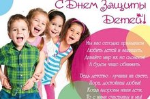 Дети — маленькие частички большого счастья, чудо, которое наполняет жизнь каждого взрослого неподдельной радостью и теплотой. Дети так нуждаются в любви и заботе, в родительской ласке и хочется, чтобы каждое детское сердце не было обделено этим счастьем. В День защиты детей желаем каждому ребенку иметь крепкую семью и все необходимое для счастливого детства. Пусть детские улыбки освещают нашу планету, и каждый из маленьких жителей нашей земли будет здоровым и счастливым.С Днем защиты детей! Пусть наши дети как можно дольше остаются детьми. Беззаботными, веселыми, радостными. Пусть небо над головой всегда будет мирным, а каждый новый день — добрым и интересным. А родителям пожелаем терпения, доброты и нежности.БЕРЕГИТЕ ДЕТСТВО ! -