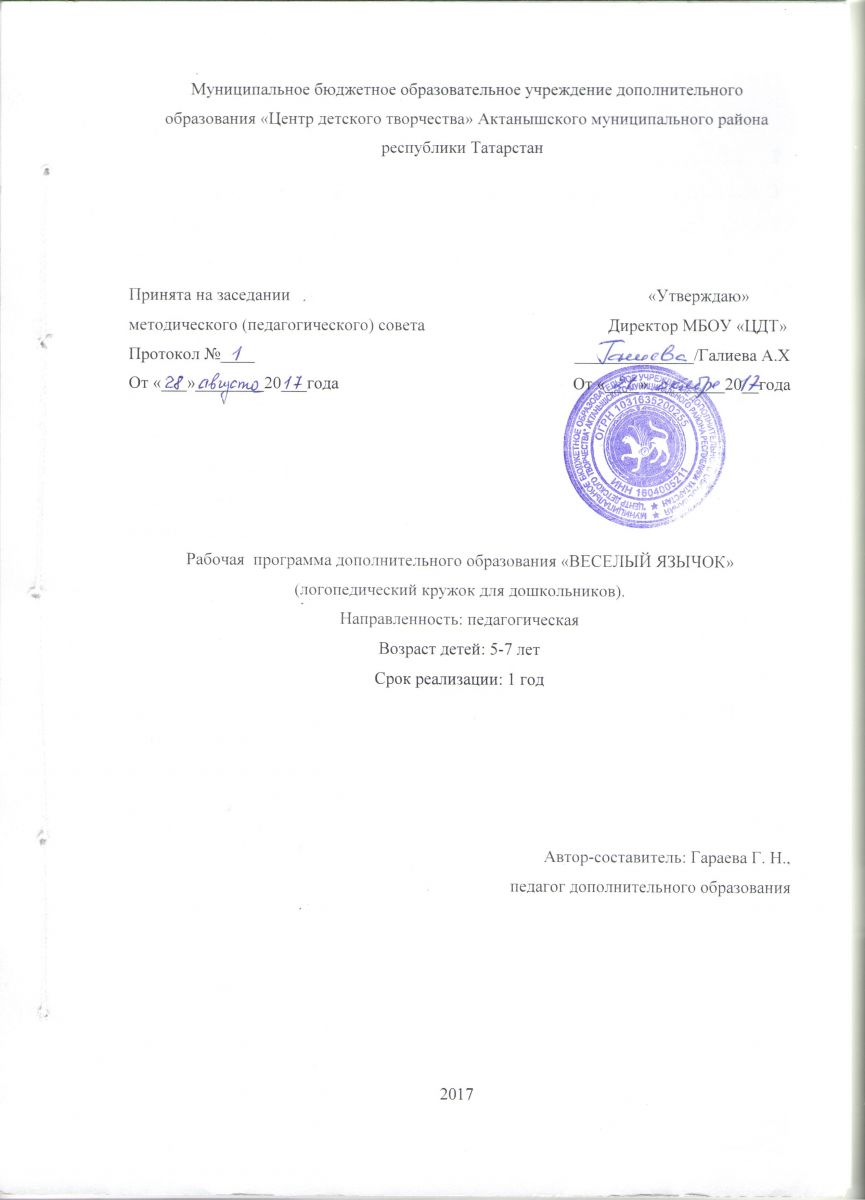 Муниципальное бюджетное образовательное учреждение дополнительного образования "Центр детского творчества" Актанышского муниципального района РТ