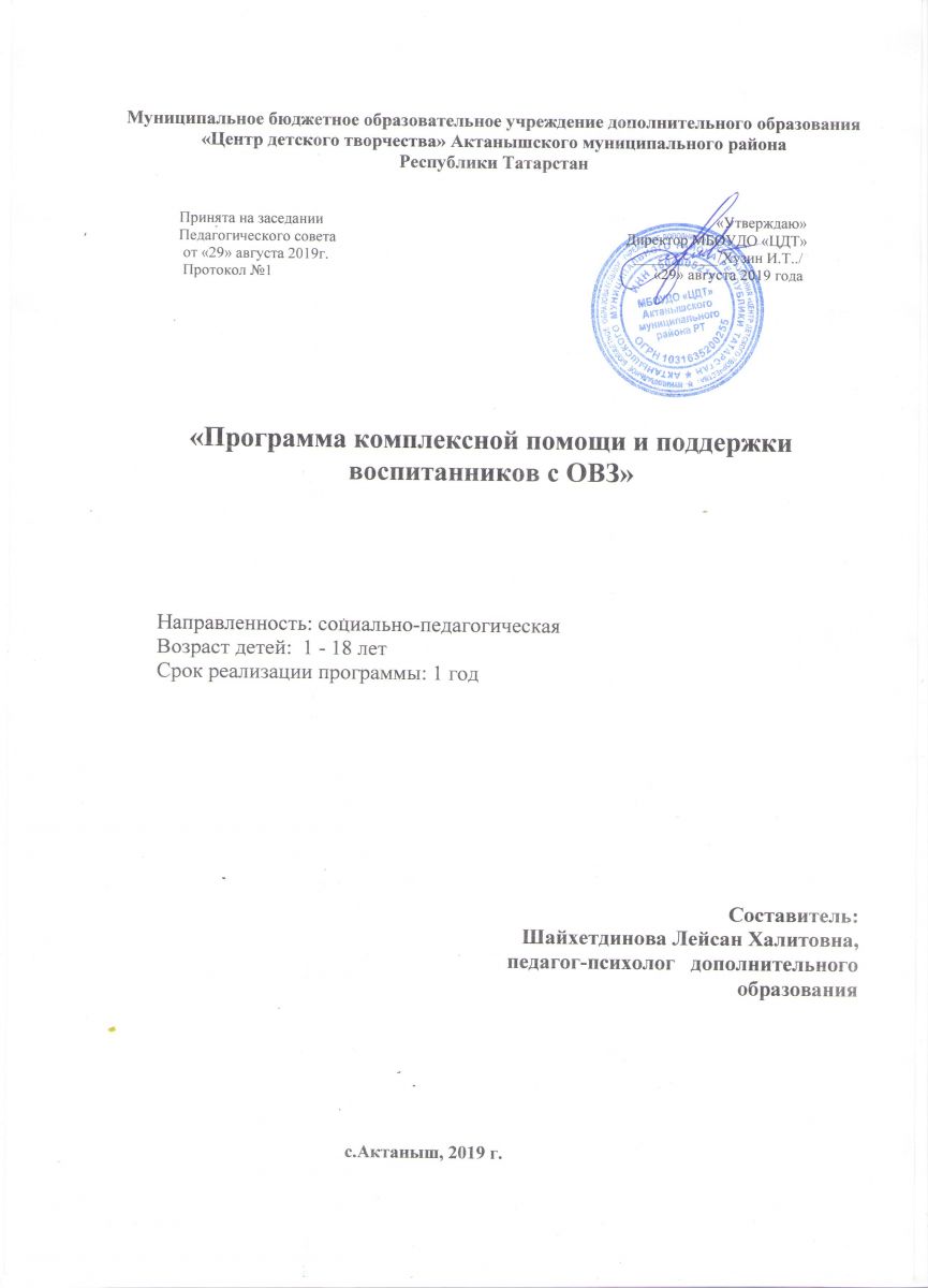 Муниципальное бюджетное образовательное учреждение дополнительного образования "Центр детского творчества" Актанышского муниципального района РТ