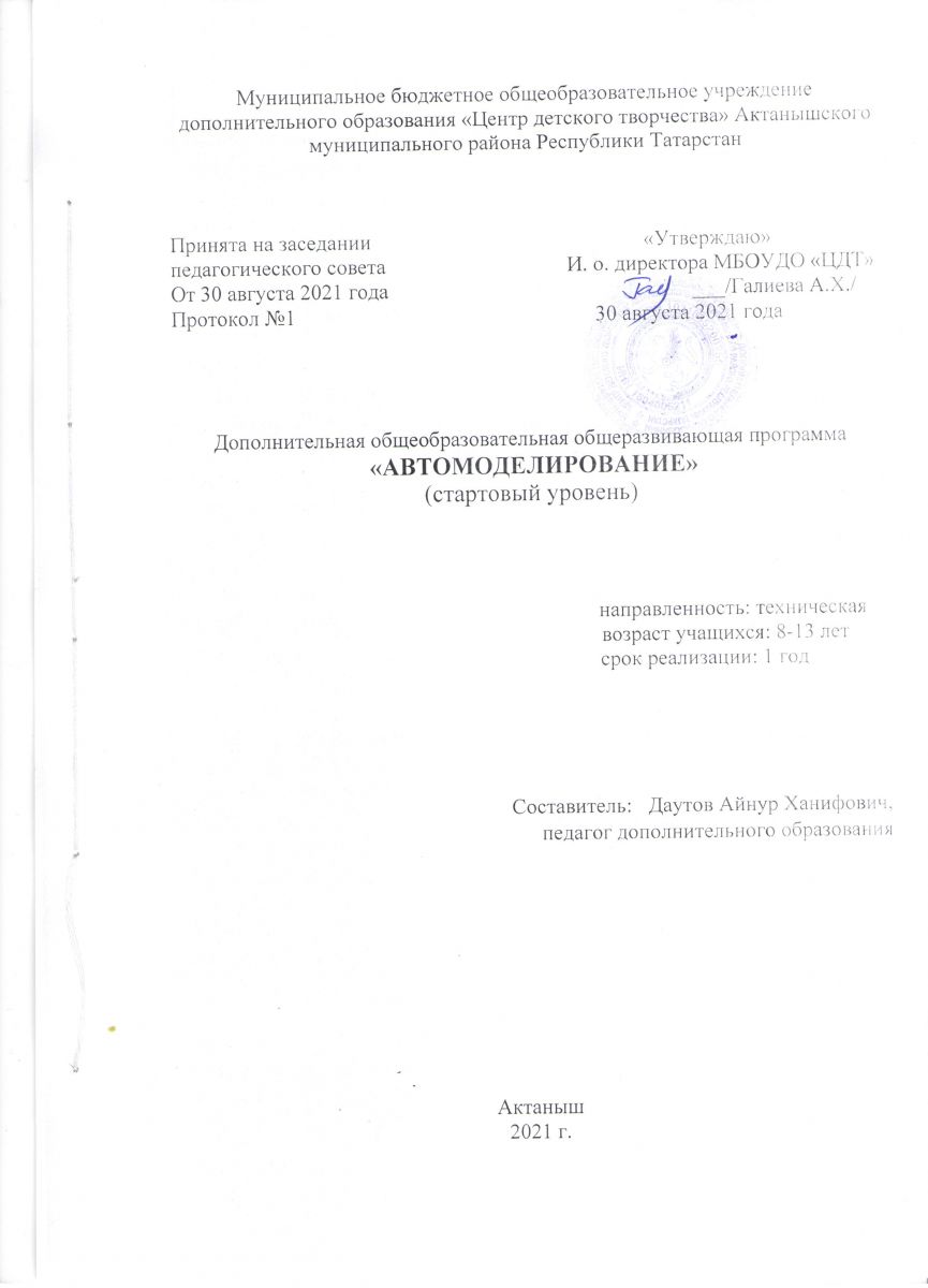 Муниципальное бюджетное образовательное учреждение дополнительного образования "Центр детского творчества" Актанышского муниципального района РТ