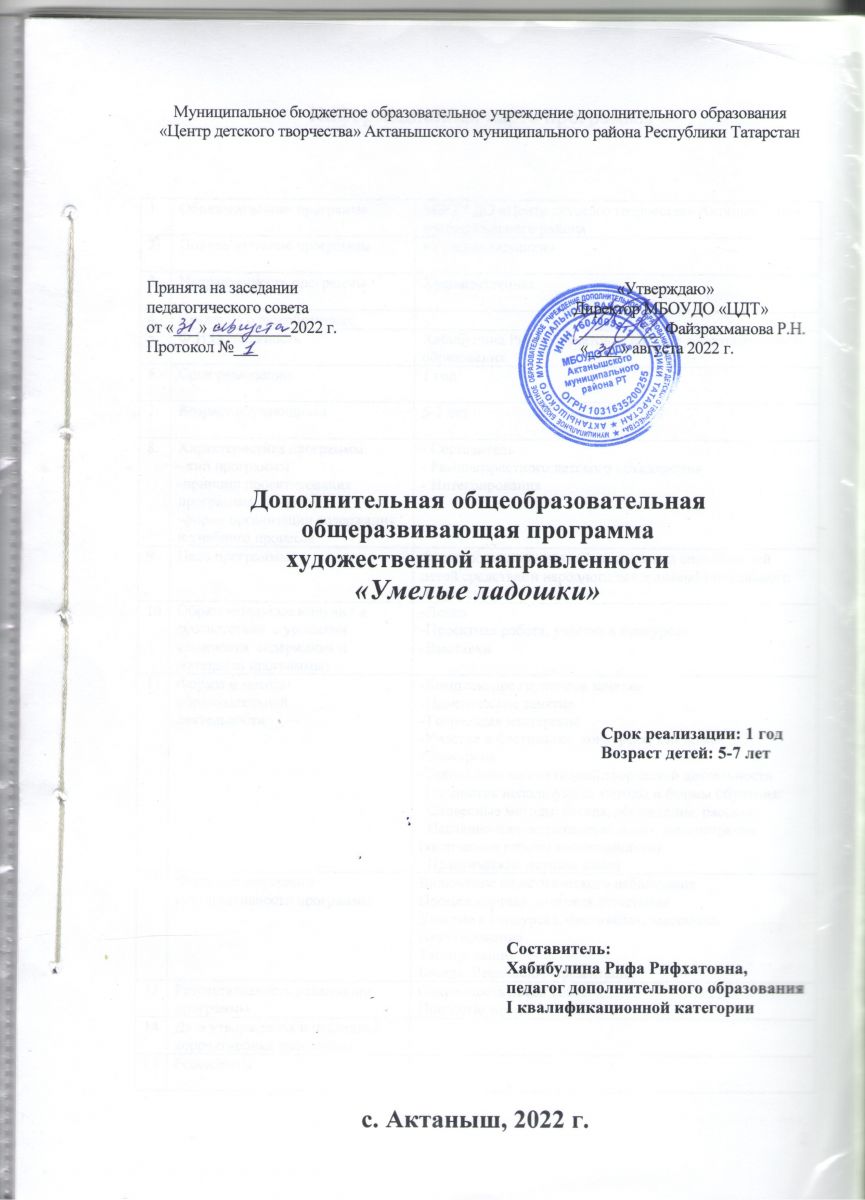 Муниципальное бюджетное образовательное учреждение дополнительного образования "Центр детского творчества" Актанышского муниципального района РТ
