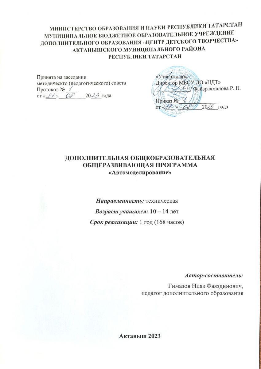 Муниципальное бюджетное образовательное учреждение дополнительного образования "Центр детского творчества" Актанышского муниципального района РТ