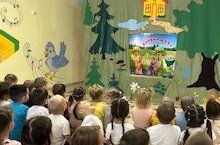 Бездә кунакта «Жемчужина» курчак-марионеткалар театры. «Приключения Васи в мире насекомых» дип исемләнгән тамаша балаларга бик ошады./ У нас в гостях театр кукол-марионеток «Жемчужина» с театром «Приключения Васи в мире насекомых».