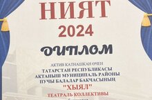 «Ният» балалар-яшүсмерләр театр коллективларының милли фестиваль-конкурсы балалар милли театр сәнгатен үстерү һәм популярлаштыру, яңа талантлы яшьләрне ачыклау һәм аларның иҗади сәләтләрен тормышка ашыруда ярдәм итү максатыннан төбәкара бәйге оештырды. Әлеге бәйгедә безнең балалар бакчасыннан "Хыял"театр коллективы катнашты. Котлыйбыз!/ Национальный фестиваль-конкурс детско-юношеских театральных коллективов с целью развития и популяризации детского национального театрального искусства, выявления новых талантливых молодых людей и содействия в реализации их творческих способностей организовал межрегиональный конкурс . В конкурсе принял участие театральный коллектив "Мечта"из нашего детского сада. Поздравляем!