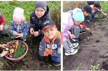 Мәктәпкәчә яшьтәге балалар чорында табигатькә, үзеңә һәм әйләнә-тирәдәге кешеләргә уңай мөнәсәбәт урнаша. Балалар бакчасындагы яшелчә бакчасы балаларга экологик тәрбия бирү өчен кирәкле шартларның берсе булып тора. Безнең бакча балалары, педагоглар белән бергә, яздан көзгә кадәр бакчада үсемлекләрне карадылар: орлык чәчтеләр, су сиптеләр, утадылар, йомшарттылар, үсемлекләрне күзәттеләр. Бакча, үз чиратында, балаларга хезмәтләре өчен рәхмәт белдерде. Бакчада бергәләп эшләү җаваплылыкка өйрәнергә мөмкинлек бирә, хезмәт күнекмәләрен формалаштырырга һәм балалар коллективын берләштерергә ярдәм итә. Балалар зур рәхәтлек һәм үз хезмәтләре белән горурланып, үстерелгән уңышны җыйдылар./ В период дошкольного детства закладывается позитивное отношение к природе, к себе и окружающим людям. Огород в детском саду является одним из условий, которое необходимо для осуществления экологического воспитания детей. Дети нашего сада вместе с педагогами, начиная с весны и до осени, ухаживали за растениями в огороде: сеяли семена, поливали, пололи, рыхлили, наблюдали за растениями. В свою очередь, огород, отблагодарил детей за их труд. Совместный труд на огороде даёт возможность научиться ответственности, способствует формированию трудовых навыков и объединению детского коллектива. Дети с большим удовольствием и чувством гордости за свой труд, собрали выращенный урожай.