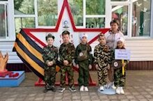 13 май көнне мәктәпкә әзерлек төркеме балалары «Аҗаган»патриотик уенда катнаштылар. «Аҗаган» -тәрбияләнүчеләрне хәрби-патриотик тәрбияләү чараларының берсе. Балалар үзләренең белемнәрен һәм осталыкларын уенның төрле этапларында күрсәттеләр. Командаларга маршрут кәгазе бирелде, анда станцияләрне узу шартлары төгәл язылган иде. Һәр станциядә хөкемдарлар алынган санда очколар санадылар. Балалар зур кызыксыну һәм дәрт белән уенда катнаштылар./13 мая дети подготовительной к школе группы приняли участие в патриотической игре «Зарница».Зарница» — это одно из средств военно-патриотического воспитания. Дети показали свои знания и умения на разных этапах игры. Командам был выдан маршрутный лист, где были четко расписаны условия прохождения станций. На каждой станции судьи начисляли полученное количество очков. Дети с большим интересом и азартом участвовали в игре.