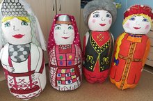 Папье-машедан педагоглар төрле милләт матрешкаларын ясадылар.\\Живут разные народы в разных странах. Все они говорят на разных языках. Из Папье-маше педагоги делали матрешки разных национальностей.