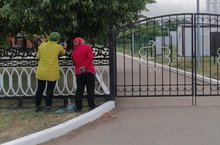 Территорияне матурлыйбыз.\\Украшаем территорию. 17.06.2021 Территориядә буяу, матурлау эшләре дә дәвам итә.\\На территории продолжаются покрасочные и отделочные работы.