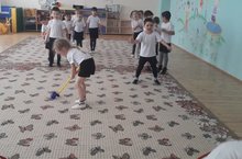 Сегодня был проведен физкультурный досуг со старшей и подготовительной группой, на котором были проведены различные эстафеты с мячом, клюшкой и перетягиванием каната.//Бүген зурлар һәм мәктәпкә әзерлек төркеме белән физкультура ялы үткәрелде, анда туп, кәшәкә һәм аркан тартышу буенча төрле эстафеталар үткәрелде.