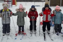 Бүген зурлар төркеме балалары физик үсеш бирү эшчәнлегендә чаңгылар белән аякларны шудырып йөрү күнекмәсен үзләштерделәр.//Сегодня дети старшей группы на занятии физической культуры научились одевать лыжи и ходить скользящим шагом.