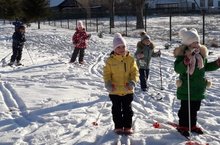 Физкультура эшчәнлекләрендә мәктәпкә әзерлек төркеме балалары чаңгыда шуу күнекмәләрен үстерәләр.// Дети подготовительной к школе группы на занятиях физической культуры катаются на лыжах