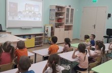 Инглиз теле түгәрәгендә уртанчылар төркеме балаларының белемнәрен тирәнәйтү, сүзләрне тизрәк истә калдыру максатыннан, мультфильм карыйлар.// На кружке английского языка дети средней группы смотрят мульфильм "Hillo" и знакомятся с веселой лягушкой.
