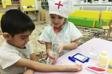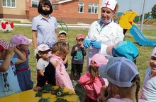 Медицина хезмәткәрләре көне.\\ День медицинского работника. 20.06.2020 Медицина хезмәткәрләре көне уңаеннан уртанчылар төркеме балалары шәфкать туташы һөнәре белән таныштылар.\\ Накануне Дня медицинского работника дети средней группы познакомились с профессией медика.